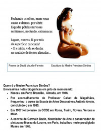 Refiro-me a Francisco Simões, o escultor-poeta da Mulher e, à nossa memória de imediato vêm as maravilhosas esculturas femininas colocadas na Estação do Metro do Campo Pequeno, ou então, o grupo escultórico denominado «Flores de Verde Pinho», situado na Área de Serviço de Leiria, em homenagem a El-Rei D. Dinis e às «Cantigas de Amigo».