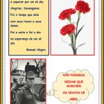 A 25 de abril de 1974 aconteceu o que há muito o povo desejava, uma vida melhor, com direitos sociais, culturais e até económicos. Enfim, a liberdade de expressão e de ação. Deu-se a chamada Revolução dos Cravos também conhecida como Revolução de 25 de Abril, que depôs o regime ditatorial do Estado Novo, vigente desde 1933.