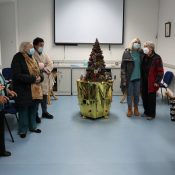 A tarde estava destinada para convívio social. Assim sendo terminou-se a árvore de Natal que já estava iniciada noutras sessões. Este ano a escolha recaiu na utilização de pinhas, trazidas por algumas senhoras, que foram pintadas por todos os presentes.