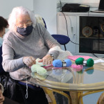 estimular a memória, desenvolver a coordenação e facultar a articulação dos braços. Sabe-se que “os trabalhos manuais estimulam as habilidades motoras e os sentidos, exercitando as capacidades do corpo físico. Esse tipo de ação tem grande impacto no cérebro, o que é muito importante para a memória, concentração, lógica etc. Outro grande benefício é possível reduzir o stresse e combater a depressão, tão comuns nos dias atuais”. Foram iniciados dois trabalhos coletivos: um de recorte e colagem e outro em croché, sendo este iniciativa da professora Olga Valido e com um fim solidário.