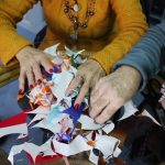 estimular a memória, desenvolver a coordenação e facultar a articulação dos braços. Sabe-se que “os trabalhos manuais estimulam as habilidades motoras e os sentidos, exercitando as capacidades do corpo físico. Esse tipo de ação tem grande impacto no cérebro, o que é muito importante para a memória, concentração, lógica etc. Outro grande benefício é possível reduzir o stresse e combater a depressão, tão comuns nos dias atuais”. Foram iniciados dois trabalhos coletivos: um de recorte e colagem e outro em croché, sendo este iniciativa da professora Olga Valido e com um fim solidário.